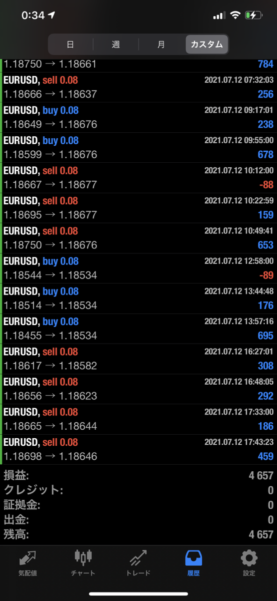 ★2021年7月12日:運用実績!+4,657円♪ ♥専用EAの運用実績♥ 2021.07.13 スポンサーリンク こんにちは、ともです🌟 2021年7月12日の運用実績は、、、 +4,657円でした🎵 昨日は、どの通貨を見てもレンジ気味に推移しているので、 活発な売買がなかったと見ていいでしょう🤔 まだまだチャンスはあるので、 根気強く待つことが大事です💕 ★-結果はこちら↓↓-★ LINE登録された方だけに、 3日間限定でEAを無料配布しています♪ 平均月利20%の強気システムです♪