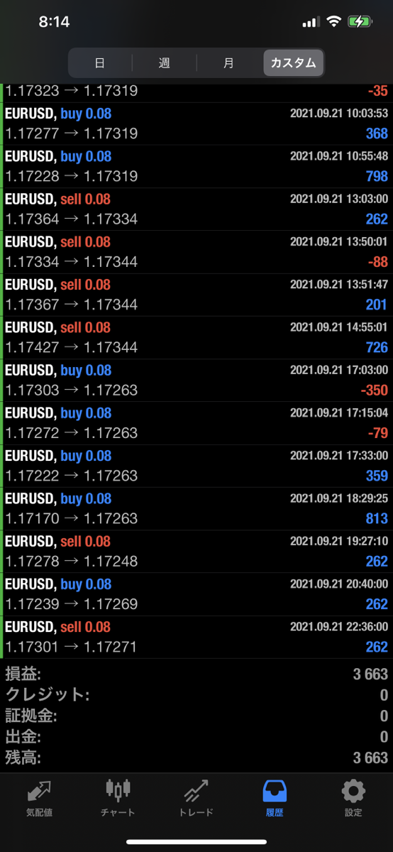 ★2021年9月21日:運用実績!+3,663円♬ ♥専用EAの運用実績♥ 2021.09.22 スポンサーリンク こんにちは、ともです🌟 2021年9月21日の運用実績は、、、 +3,663円でした♬ 連日続いていた爆益はここで落ち着いてしまいましたね😂 9月も残りわずかとなりましたが 引き続き利益を増やしていきましょう✨ 本日はFOMCもあるので 相場の動きには要注意しながら稼働していきましょう😘 ★-結果はこちら↓↓-★ LINE登録された方だけに、 3日間限定でEAを無料配布しています♪ 平均月利20%の強気システムです♪