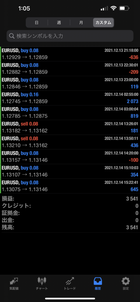 ★2021年12月14日:運用実績!+3,541円♬ ♥専用EAの運用実績♥ 2021.12.15 スポンサーリンク こんにちは、ともです🌟 2021年12月14日の運用実績は、、、 +3,541円でした✨ 昨日と比べて落ち着いたものの しっかり利益を獲得してくれていますね🌈 最近、爆益の結果を皆さんに報告できていないので Progo Plusには今後も沢山頑張ってもらいます🔥 ★-結果はこちら↓↓-★ LINE登録された方だけに、 3日間限定でEAを無料配布しています♪ 平均月利20%の強気システムです♪