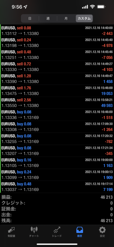 ★2021年12月16日:運用実績!+46,213円♬ ♥専用EAの運用実績♥ 2021.12.17 スポンサーリンク こんにちは、ともです🌟 2021年12月16日の運用実績は、、、 +46,213円でした✨ 久しぶりに爆益報告することができました😆❤ クリスマスは贅沢な時間を 過ごせそうです🎅🎄 お金がピンチで家族や自分に クリスマスプレゼントを買えない(-_-;) と、言う方でもProgo Plusに任せれば沢山利益を出してくれるので、 今から稼働させても遅くないです🎁 ★-結果はこちら↓↓-★ LINE登録された方だけに、 3日間限定でEAを無料配布しています♪ 平均月利20%の強気システムです♪