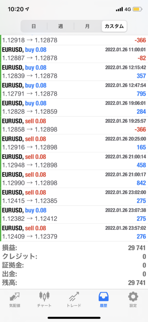 ★2022年1月24日~28日:運用実績!+29,741円♬ ♥専用EAの運用実績♥ 2022.01.31 スポンサーリンク 2022年1月24日~28日の運用実績は、、、 +29,741円でした😌 先週もお疲れさまでした🌈 含み損を抱えていた日が続いたのもあり 爆益の結果とまではなりませんでした😣 1月も今日で最後なので どれだけいい結果を出してくれるか楽しみです🌹 ★-結果はこちら↓↓-★ LINE登録された方だけに、 3日間限定でEAを無料配布しています♪ 平均月利20%の強気システムです♪
